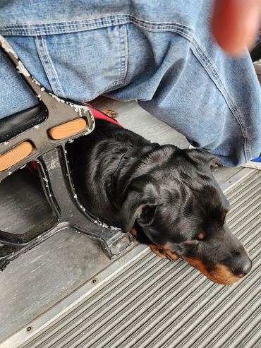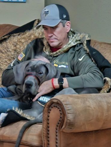 In November 2024, I brought Dusty home. Dusty helps me with my balance. He keeps me focused and helps me cope with my PTSD and TBI symptoms.