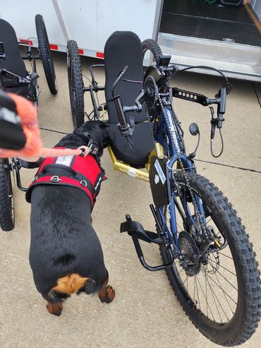 I am a service-connected disabled veteran. I was in a car accident in 2004 resulting in a TBI (Traumatic Brain Injury) with left-sided weakness. I received my first service dog, Boone, in 2015. Boone turned 9 years old in 2024. Sept 6, 2024, I found out Boone had cancer and needed to be retired. I contacted the original company that gave me Boone to find I didn’t have many options for a new dog. I was devastated not knowing if I would be able to have another service dog until I met Dusty.